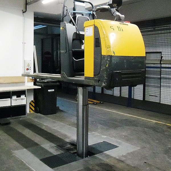 Diese Einstempel-Hebebühne mit einer Tragfähigkeit von 3 Tonnen, ist ideal für das Anheben leichterer  Flurförderzeuge, wie z.B. elektrische Gabelhubwagen oder kleinere Stapler.