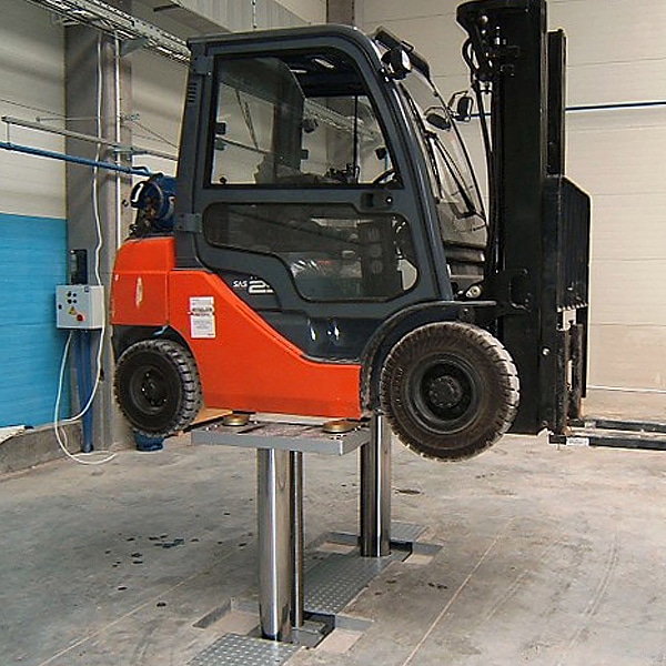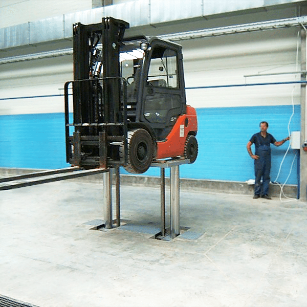 Um schwere Flurförderzeuge anzuheben, werden leistungsfähige Hebebühnen benötigt. Bei Tragfähigkeiten bis zu 8 Tonnen ist diese JAB Hebebühne die starke Lösung dafür.