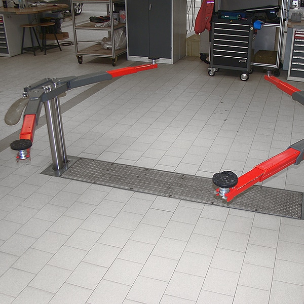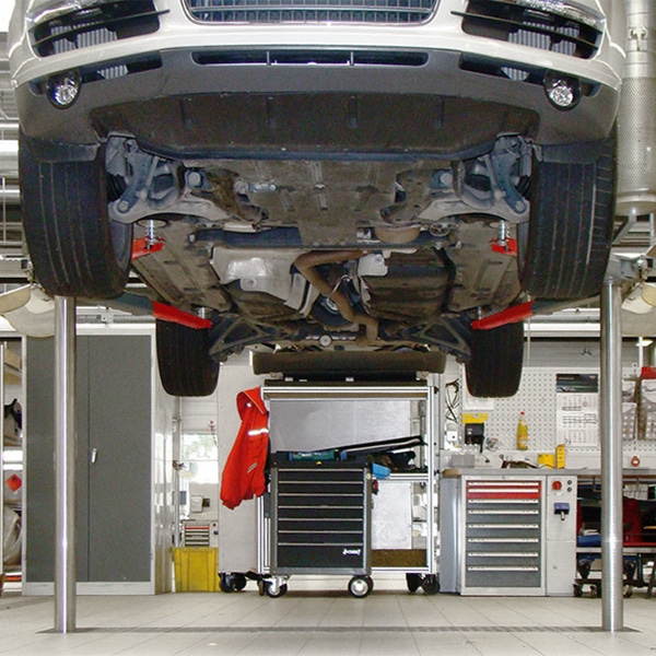 Das angehobene Fahrzeug ist nahezu uneingeschränkt zugänglich, wodurch optimale Arbeitsbedingungen gewährleistet sind.